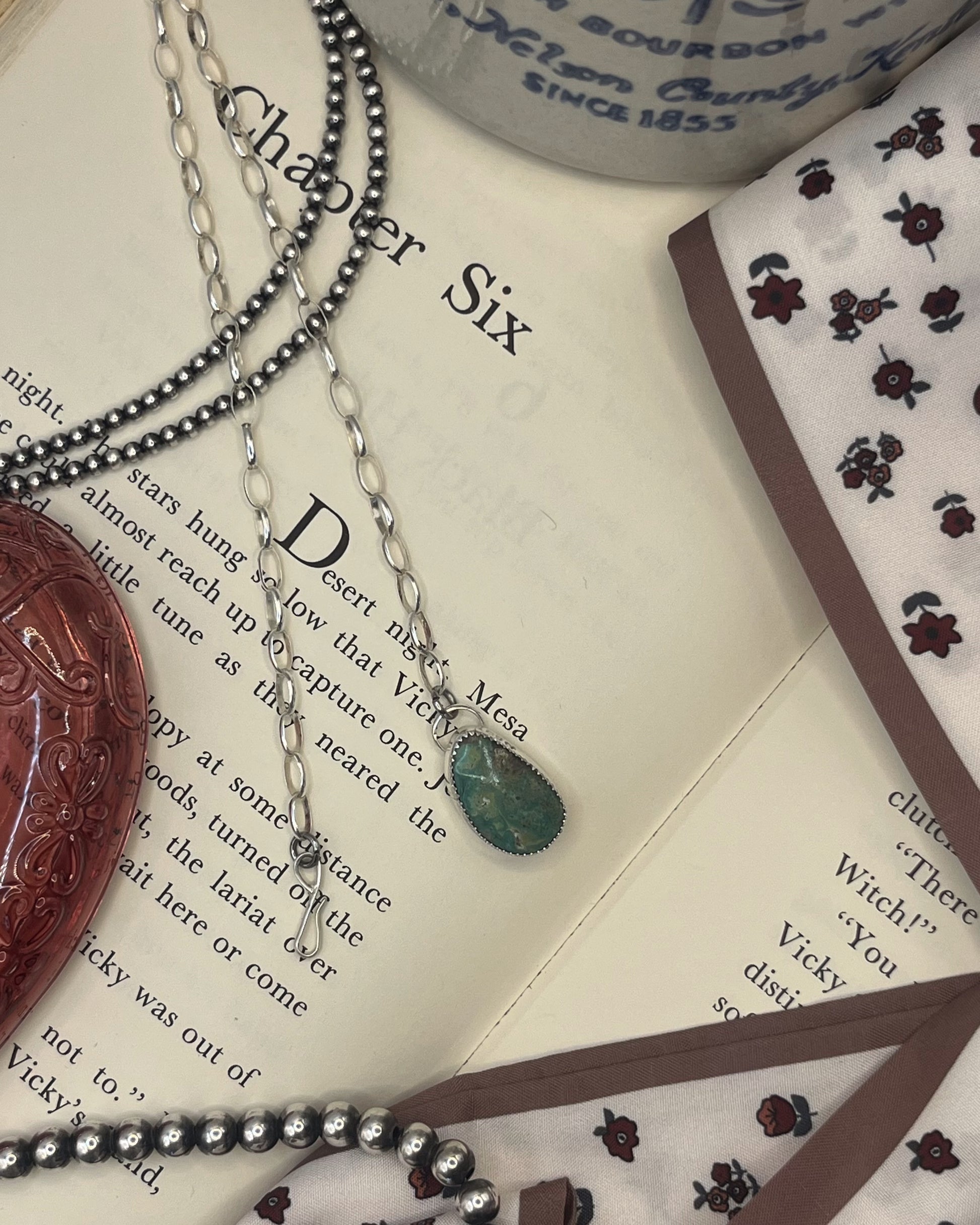 This turquoise mountain stone, set in sterling silver, adds a touch of natural beauty to this delicate necklace. The 20" chain with an adjustable shepherd's hook closure allows for a perfect fit on any neck.