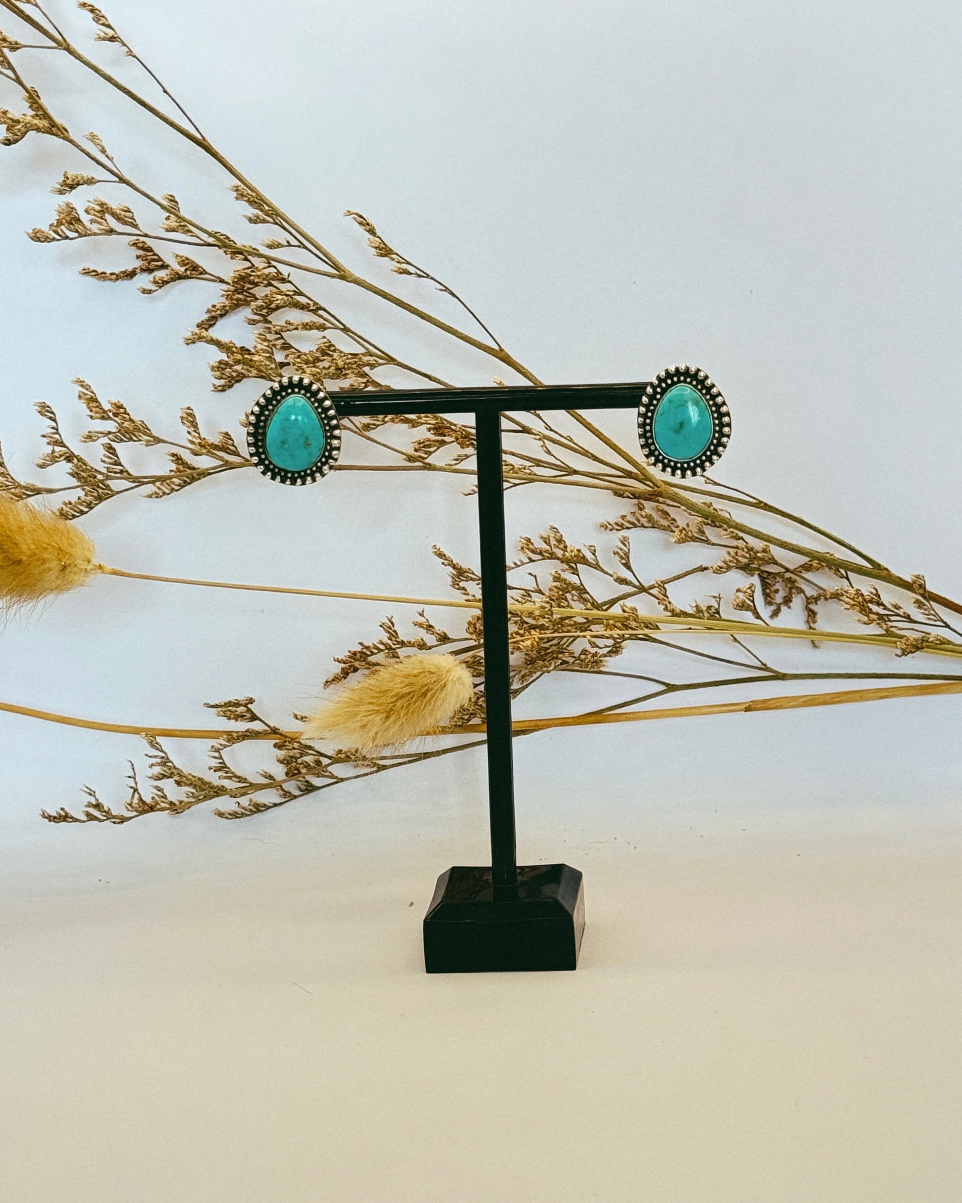 Add a pop of color to your outfit with our Loretta Earrings! These lightweight .75" earrings feature beautiful turquoise stones and are part of a set with our Darcy Necklace.