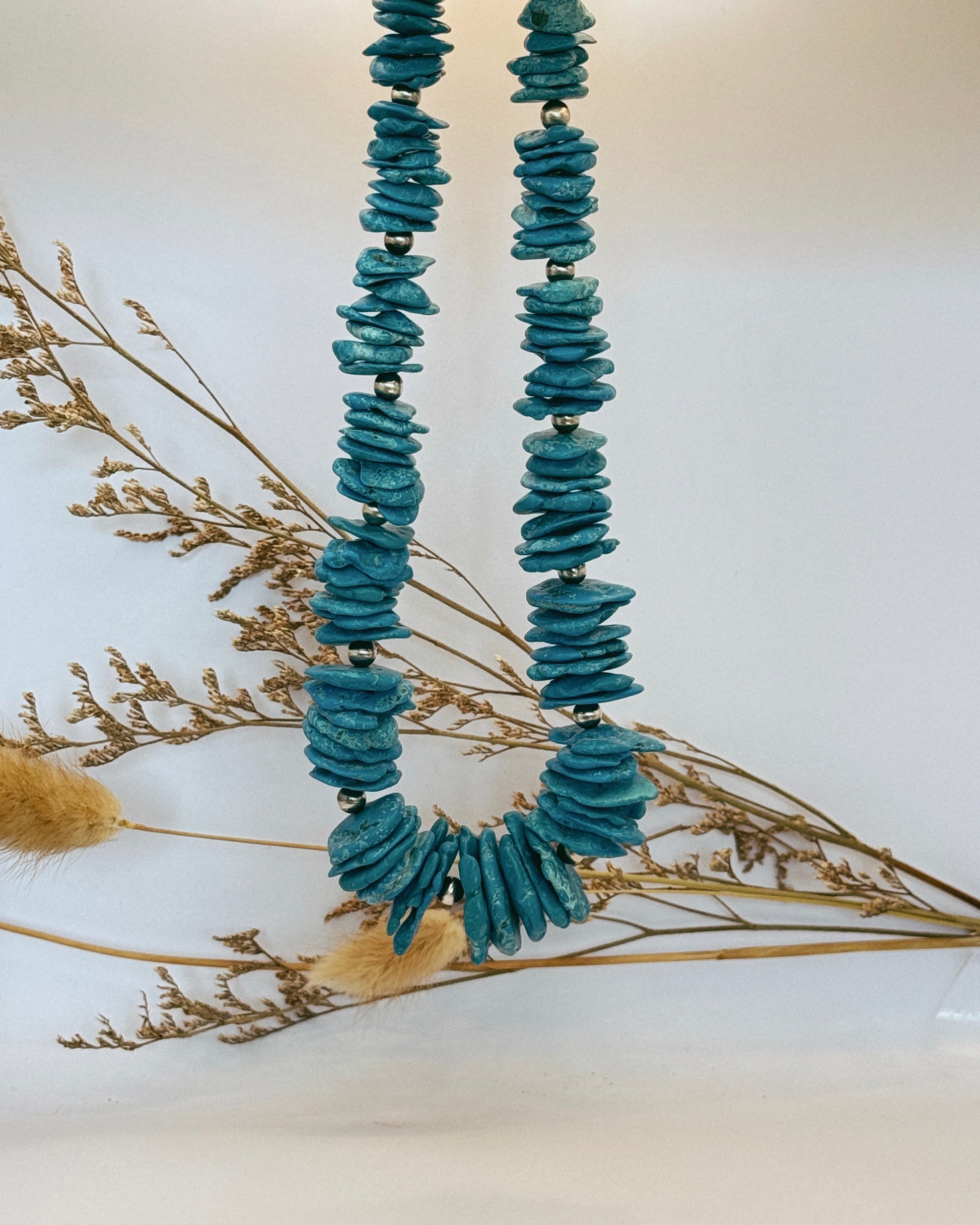 The Martha Necklace is a stunning addition to any jewelry collection. Its unique turquoise beads and sterling silver pearls add a touch of elegance to any outfit. With a length of 20 inches and a 1.5 inch extension, it's the perfect necklace for any occasion.